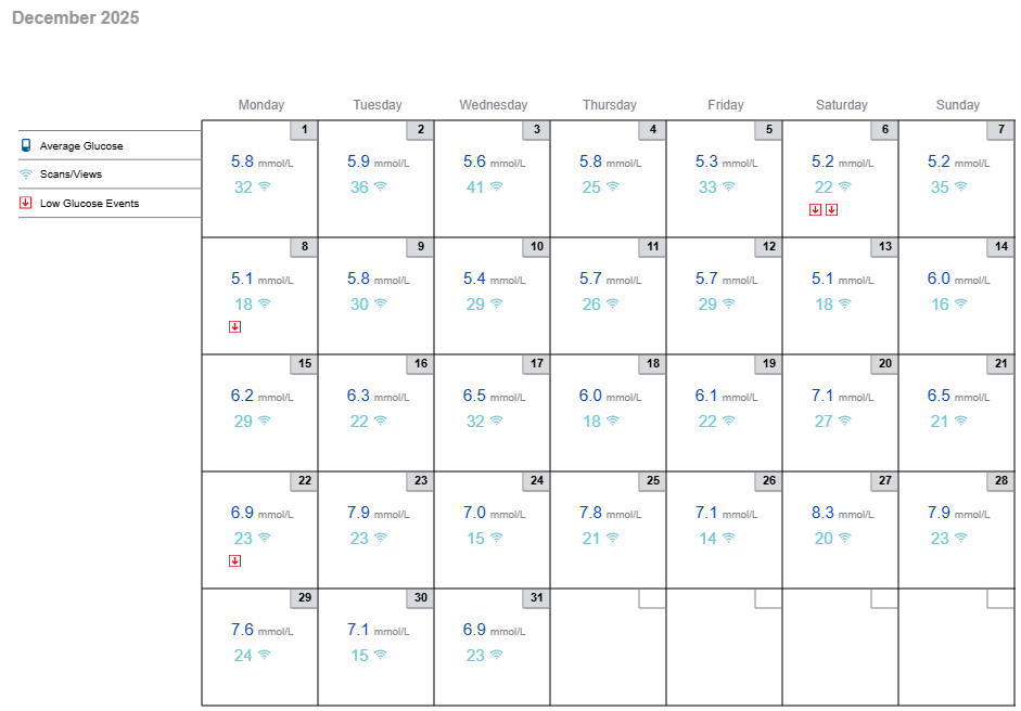 On 4th November 2024 I received panicked voice messages from my GP surgery as my HbA1c had crept up to 131 mmol/mol which is dangerously high. I had been considering trying a CGM for a few years but I wasn't sure how to get hold of them, which ones to get, or how they worked. I said to my GP that I had been considering getting one and was abruptly told "You don't need one of those." as though I was a naughty child asking for an undeserved gift. It was at this point I decided to take charge of my own health because everything I had been advised to do was clearly not working and I defiantly ordered my first CGM.