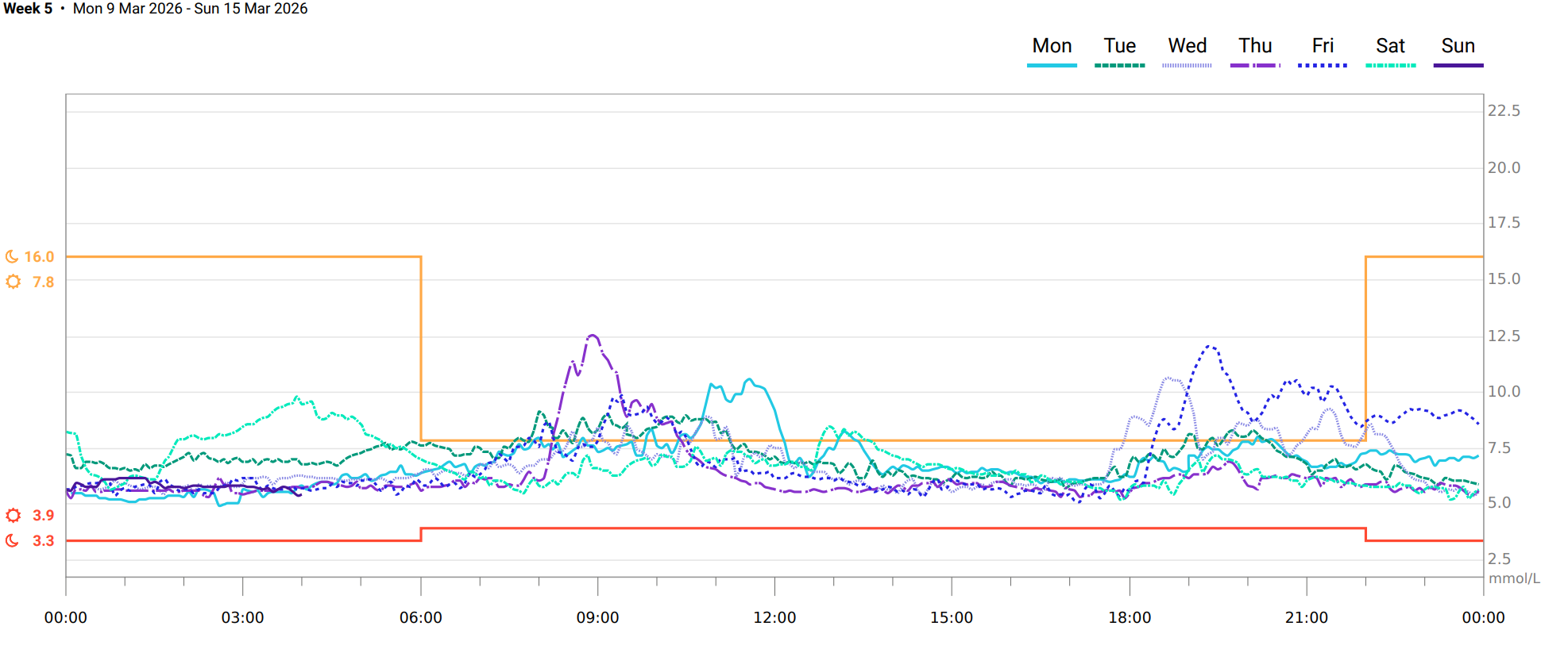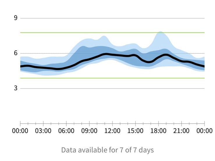 One thing I do find frustrating is that it does not give you a daily average glucose figure directly in the app. It gives you the option for 7, 14, 30 and 90 days so I usually fixate on trying to reduce my 7-day average. This can be a bit frustrating as you don't see the best of the good days and the occasional bad day tends to make it feel like you're crawling up a steep hill for the rest of the week. The LibreView website does give you access to the daily average but it's a bit of a chore to do this on a daily basis.