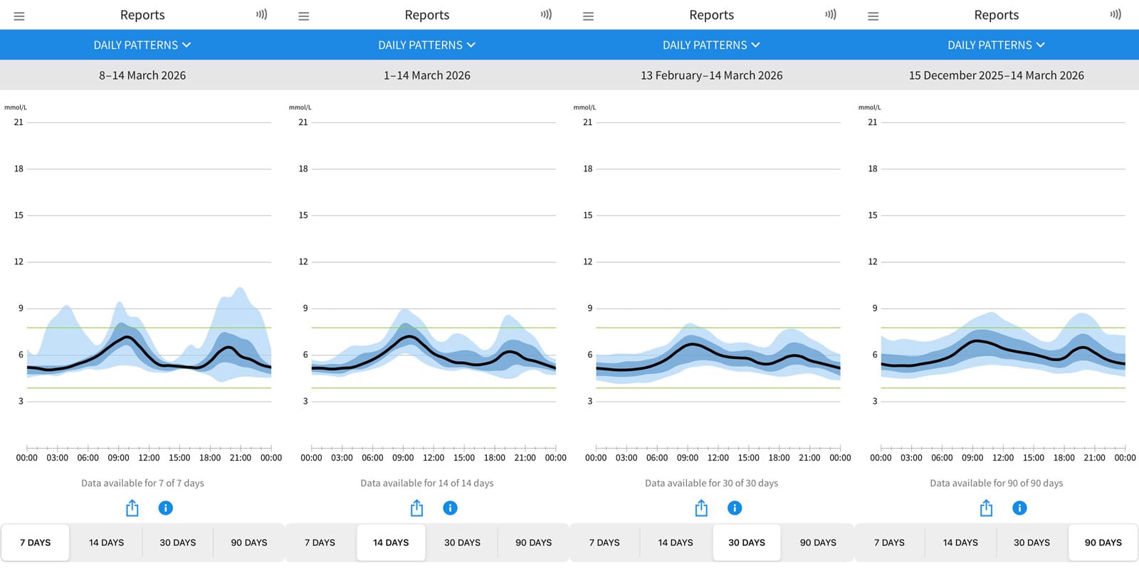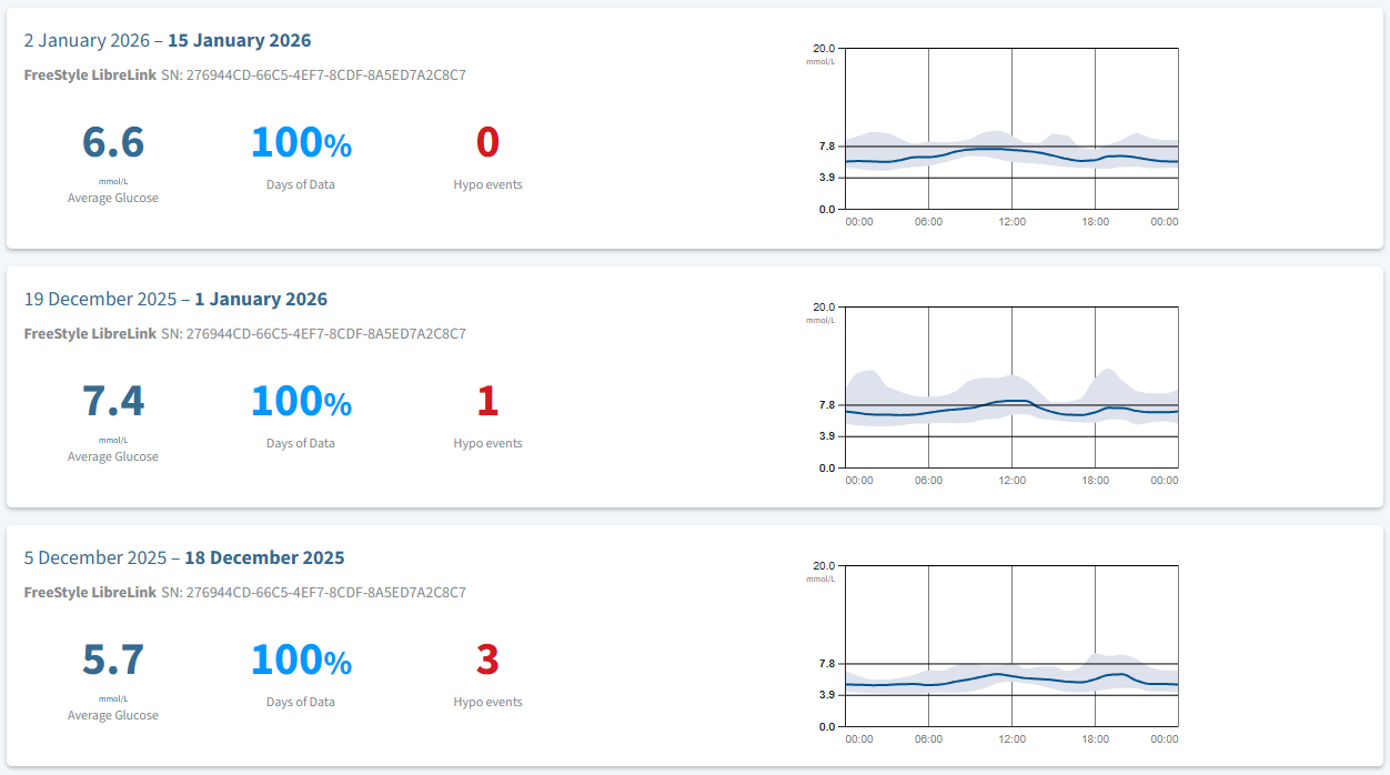 What I didn't realise for several months was that you can access all of your data in more detail using the LibreView website. It shows beyond the 90 days of data limit on the mobile app and also provides more detailed reports. You can also export your glucose data. The one thing I've not managed to be able to do is to produce an export of daily glucose averages which is the only missing feature I find frustrating.