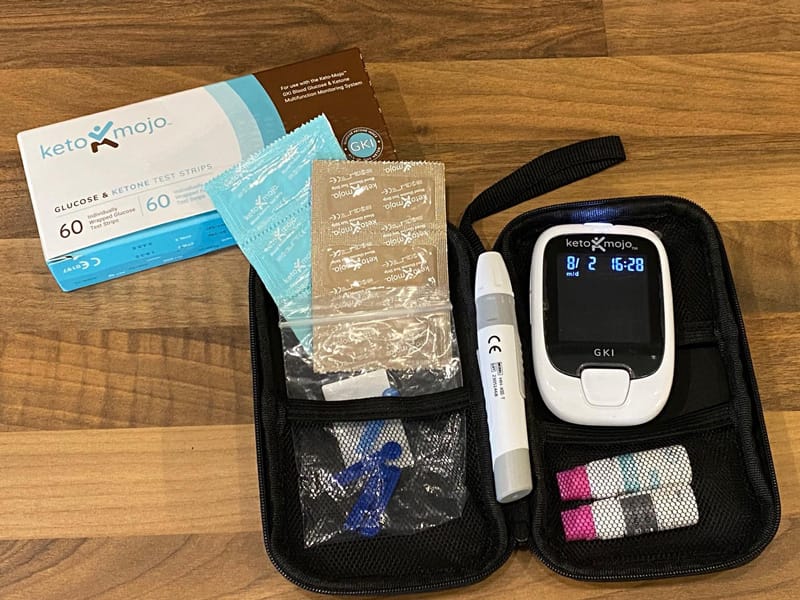 I bought a Keto-Mojo last summer because I wanted to check where I was up to with my ketogenic diet and whether I was in nutritional ketosis. I was a bit worried when one of my Ketostix was dark purple so wanted to make sure I wasn't straying into ketoacidosis. Ketostix are urine test strips that test for ketones. They are a cheap and easy way to see if you're in ketosis but they don't show you exact levels.