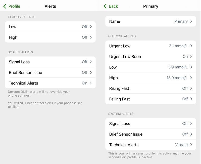 The G7 has extensive notification options which will be a big benefit if you're on medication or taking insulin and are at risk of hypoglycaemia. Having customisable profiles is very helpful if you want a quiet mode for in the office or during sleep.