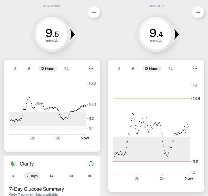 The logging features of the Dexcom sensors make them ideal for keeping track of which meals and activities are spiking your glucose levels. The ONE+ seems to read a bit high but it is the most cost-effective CGM overall so unless you need the extra features and accuracy of the G7 then it will still do the job of showing the patterns you need for making type 2 decisions. I can see why people with type 1 diabetes prefer the G7 as it is not as erratic as the ONE+ and Libre 2 (which tends to read low but then gives overly high readings when glucose levels are rising). The main strength of the Libre 2 is being able to quickly see longer term patterns and its extensive data reporting so if you're a big data nerd like me then it's a good option for keeping type 2 diabetes in check.