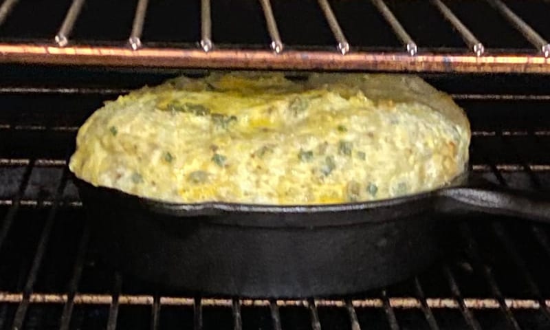 You can add as many other ingredients as you like to make this a more substantial breakfast or lunch. The key to this method is using the cast iron, butter and oven.