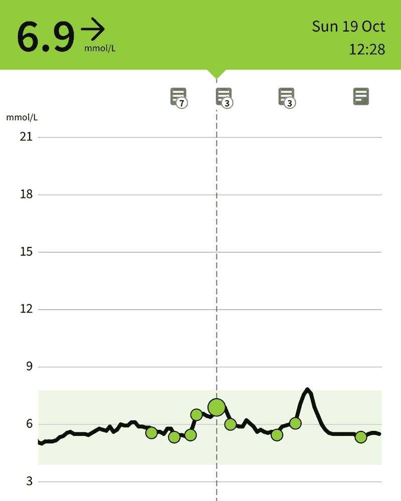 After a nice meal out and too much wine in Bury after a good 20,500 step walk to get there, I gave into stodge cravings the next morning and had bacon on a tiger roll with ketchup. I normally have sausage or bacon with eggs, cherry tomatoes and green veggies which wouldn't normally take me above my safe level of 7.8 mmol/L. Getting up near 15 makes me really anxious so it's not worth it.